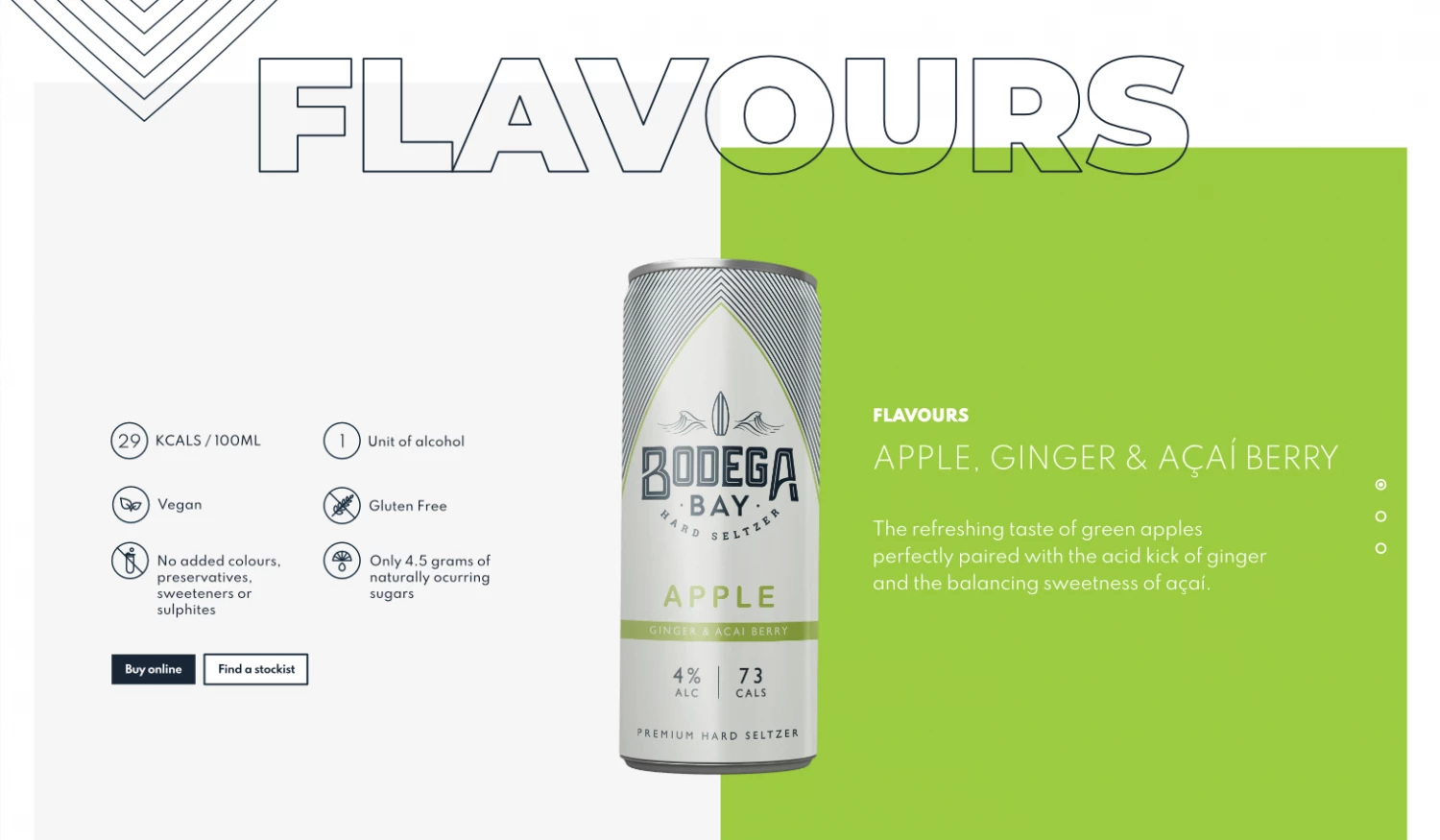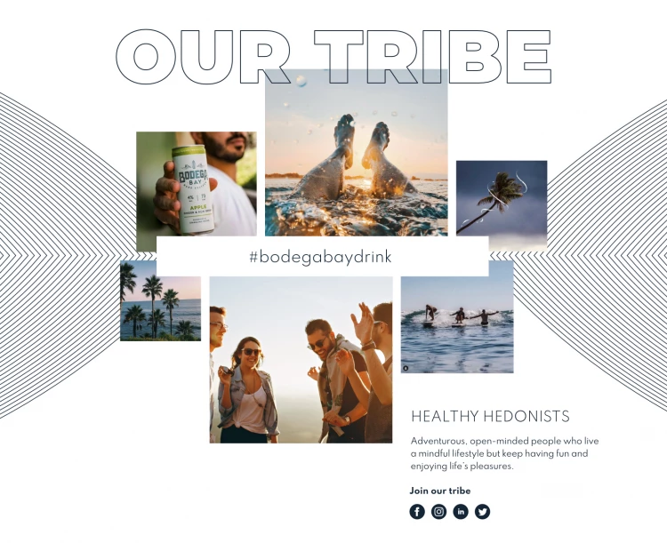 Bodega Bay is a hard seltzer brand whose target audience is defined as social, mindful and healthy but still hedonists. The drink is a sustainably delivered low-calorie alternative to the high sugar options delivered by corporations.