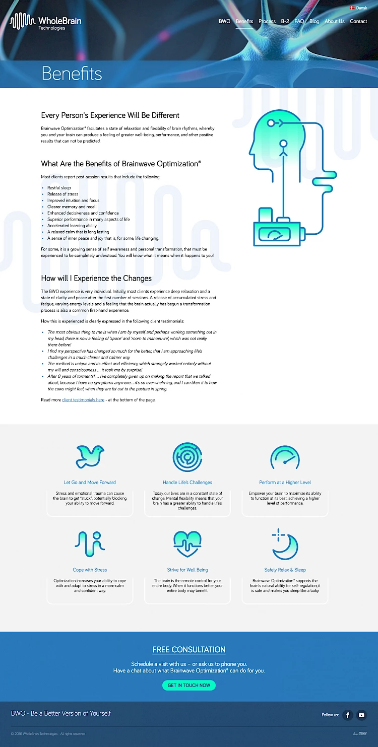 WholeBrain Technologies (Denmark) wanted a more contemporary website that would appeal to its scandinavian audience, drive more conversions and convey a more professional image.